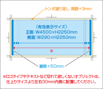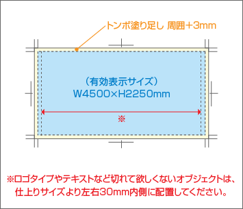 • 有効表示サイズW4500×H2250mmに対し、周囲の塗り足し3mmで制作してください。