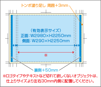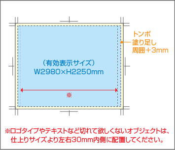 • 有効表示サイズW2980×H2250mmに対し、周囲の塗り足し3mmで制作してください。