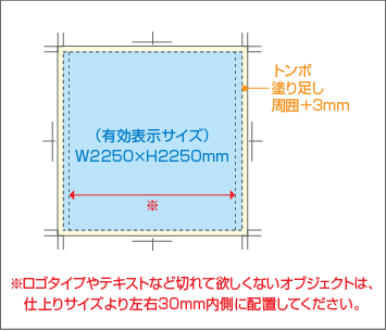 • 有効表示サイズW2250×H2250mmに対し、周囲の塗り足し3mmで制作してください。