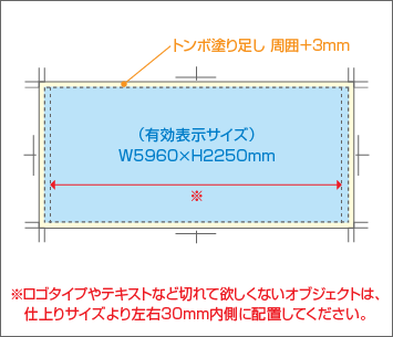 • 有効表示サイズW5960×H2250mmに対し、周囲の塗り足し3mmで制作してください。