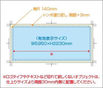 • 有効表示サイズW5950×H2230mmに対し、周囲の塗り足し3mmで制作してください。