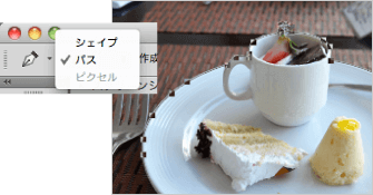 ペンツールで「パス」を選択し、切り抜きたい形の輪郭に合わせて線を引きます。実際の輪郭よりも若干内側にパスを引くことで、背景の色が出ずにきれいに切り抜けます。