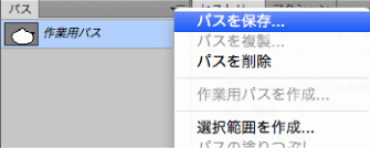 パスウィンドウのメニューから「パスを保存」を選択します。パスの名前は任意で構いません。