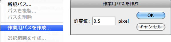 パスウィンドウのメニューより「作業用パスを作成...」を選択し許容値を「0.5」ピクセルに指定してください。